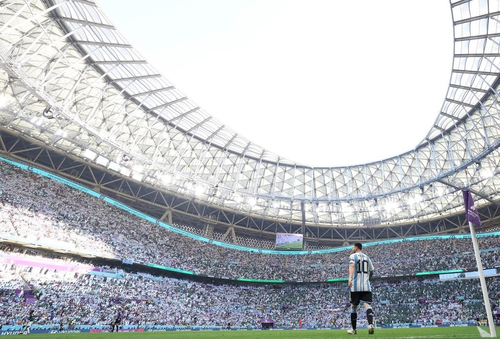 11月22日,在卡塔爾盧賽爾球場(chǎng)進(jìn)行的2022卡塔爾世界杯足球賽C組比賽中,阿根廷隊(duì)以1比2不敵沙特阿拉伯隊(duì)。新華社記者曹燦攝