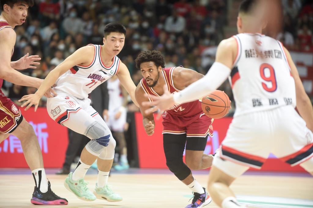 3月13日,浙江隊(duì)球員蓋利(右二)在比賽中帶球突破。新華社記者盧漢欣攝