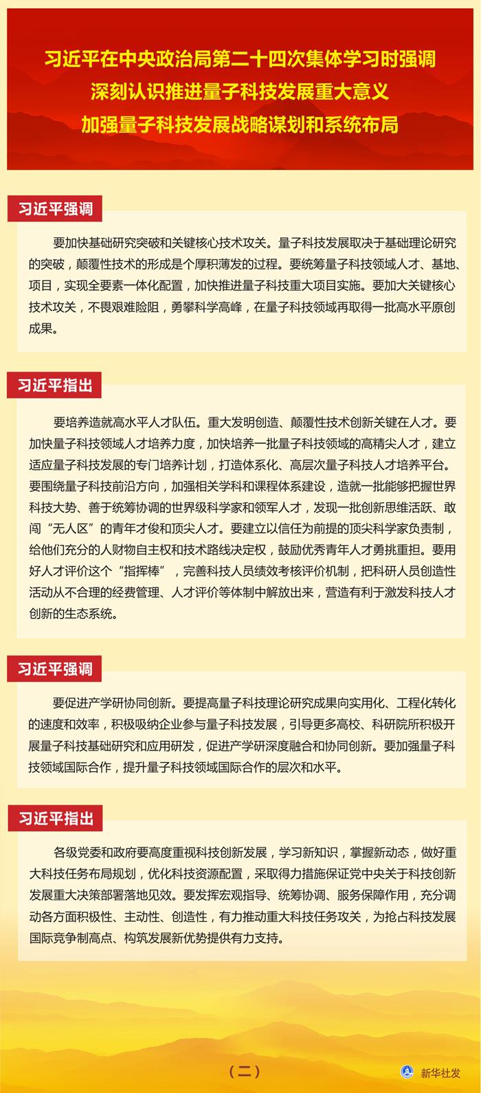 習(xí)近平在中央政治局第二十四次集體學(xué)習(xí)時(shí)強(qiáng)調(diào) 深刻認(rèn)識(shí)推進(jìn)量子科技發(fā)展重大意義 加強(qiáng)量子科技發(fā)展戰(zhàn)略謀劃和系統(tǒng)布局