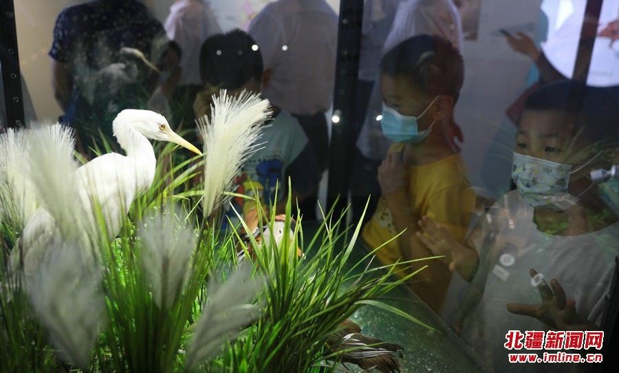 8月13日,參觀(guān)者在《振翅北疆》內(nèi)蒙古鳥(niǎo)類(lèi)特展觀(guān)展