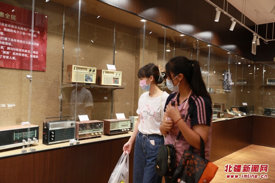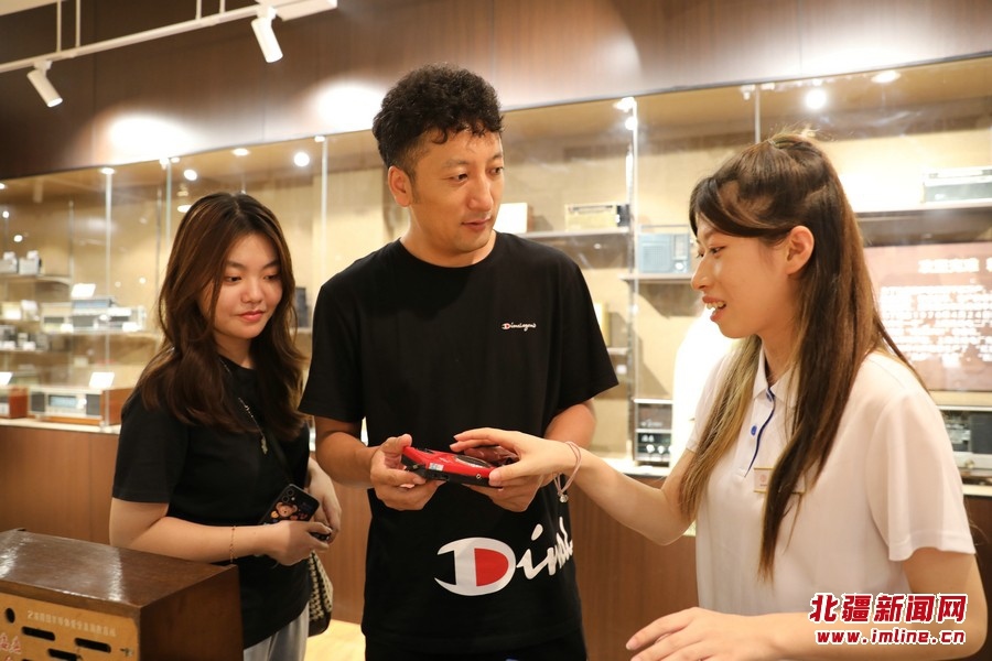 8月17日,游客在內(nèi)蒙古包頭市固陽(yáng)縣“固陽(yáng)稒事”美食特產(chǎn)文創(chuàng)街的收音機(jī)收藏館參觀。