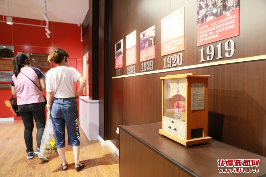 8月17日,講解員在向參觀者講解無(wú)線電歷史