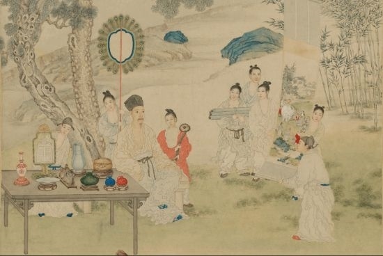 清·郎世寧《弘歷觀畫圖》軸(局部),展現(xiàn)出乾隆對古玩字畫的熱愛。(圖片來源:故宮博物院)