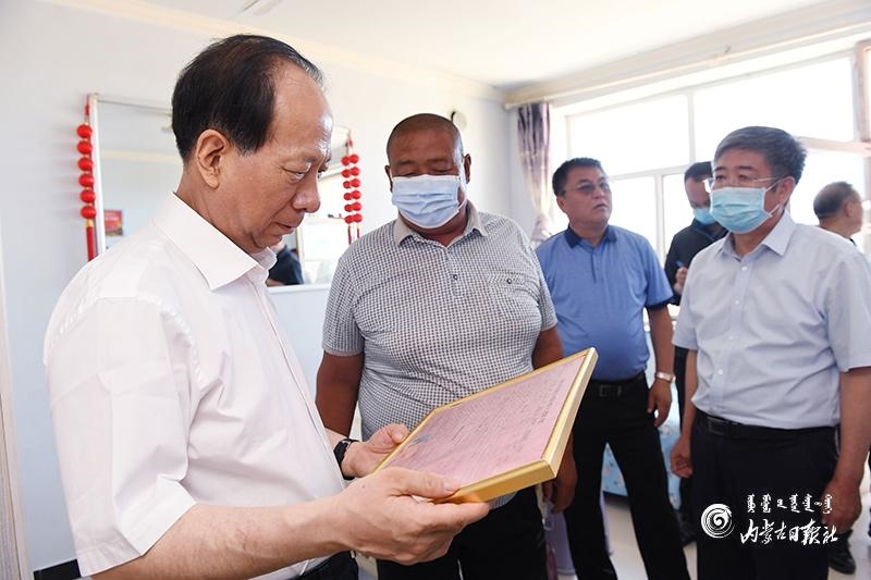 7月14日,自治區(qū)黨委書記、人大常委會主任石泰峰深入烏蘭察布市四子王旗吉生太鎮(zhèn)糖坊卜子行政村下坤兌新村,走訪貧困戶了解生產(chǎn)生活情況。內(nèi)蒙古日報社融媒體記者 袁永紅 攝