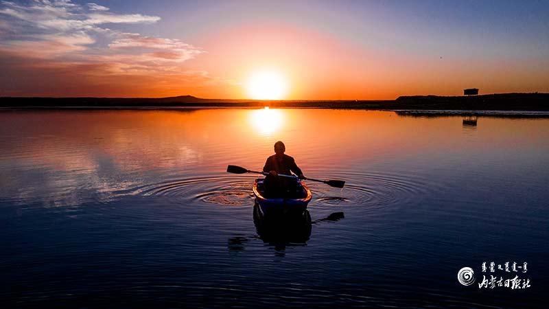 山氣日夕佳,飛鳥相與還。盛夏時(shí)節(jié),鄂爾多斯遺鷗國(guó)家級(jí)自然保護(hù)區(qū)大批夏候鳥、留鳥進(jìn)入育雛季,成千上萬(wàn)只候鳥時(shí)而盤旋云端、時(shí)而靜謐游憩。夕陽(yáng)西下,水天一色、百鳥爭(zhēng)鳴,蔚為壯觀。