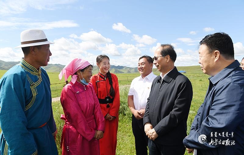 8月11日,自治區(qū)黨委書記、人大常委會(huì)主任石泰峰來到興安盟科右前旗烏蘭毛都蘇木,了解草原生態(tài)保護(hù)和牧業(yè)發(fā)展情況。內(nèi)蒙古日?qǐng)?bào)記者 袁永紅 攝