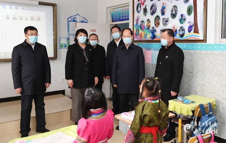 11月9日,自治區(qū)黨委書(shū)記、人大常委會(huì)主任石泰峰來(lái)到錫林浩特市民族小學(xué)了解學(xué)生學(xué)習(xí)情況。內(nèi)蒙古日?qǐng)?bào)記者 袁永紅攝
