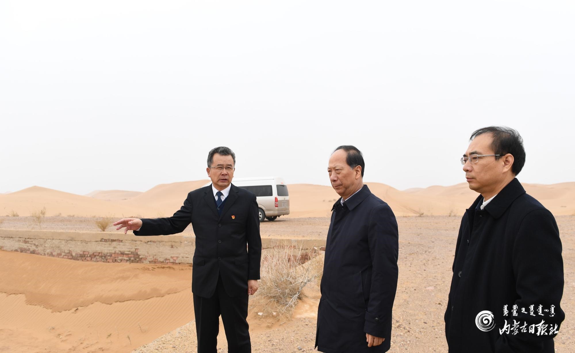 11月24日,自治區(qū)黨委書記、人大常委會(huì)主任石泰峰來(lái)到阿拉善左旗實(shí)地察看晾曬池廢水底泥處置情況。內(nèi)蒙古日?qǐng)?bào)記者 袁永紅攝