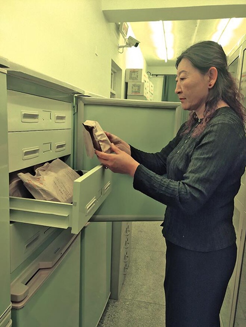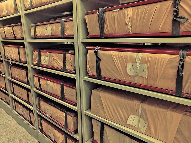 走入蒙古文古籍庫(kù),上萬(wàn)件古籍靜靜地?cái)[放著,在昏黃的特殊燈光照射下,一排排書架金光閃閃,一個(gè)個(gè)防磁柜就像知識(shí)的巨人并肩站立,歷史在這里塵封,也在這里開啟。