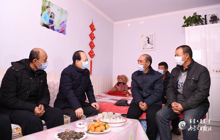 屋外白雪皚皚,屋內(nèi)爐火熊熊。石泰峰首先來到庫倫圖村脫貧戶連縻拴家,與老倆口親切交談,深入了解飲水、住房、健康等生產(chǎn)生活狀況,與他們一起細算收入賬,詢問他們對幫扶工作的滿意度,鼓勵他們堅定信心,在政策幫扶下勤勞致富。隨后,石泰峰驅(qū)車來到六道溝村,在脫貧戶孟忠忠家,與孟忠忠、胡金柱、王鎖林、韓向林、韓金龍等貧困群眾圍坐在一起嘮起家常,詳細了解“兩不愁三保障”及飲水安全、產(chǎn)業(yè)發(fā)展等情況。得知他們雖然都是因病、因殘致貧,但生產(chǎn)生活都有保障,而且不等不靠、自我發(fā)展的心勁兒很足,石泰峰說,脫貧路上一個都不能少、一戶都不能落,今年是脫貧攻堅戰(zhàn)最后一年,也是全面建成小康社會收官之年,看到你們不但脫了貧,而且信心滿滿,很有志氣和骨氣,我很放心。幸福是奮斗出來的,希望大家在政策幫扶下繼續(xù)奮斗,共同努力脫貧致富過上好日子。石泰峰要求當?shù)馗刹恳虻刂埔恕⒕珳适┎撸永m(xù)推進全面脫貧與鄉(xiāng)村振興有效銜接。
