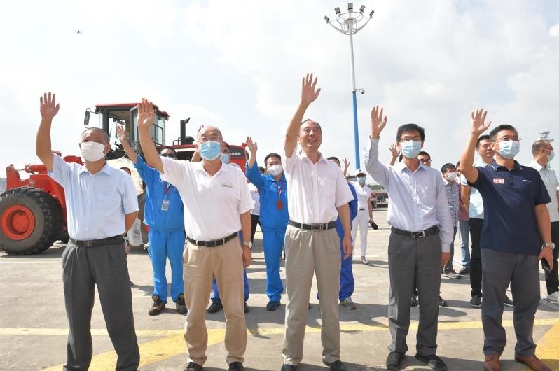 人們?cè)谏虾鴥?nèi)基地碼頭歡迎“雪龍2”號(hào)科考破冰船返航。自然資源部供圖