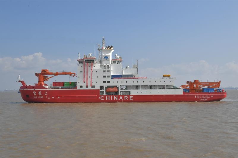 “雪龍2”號(hào)總長約122米,寬約22米,設(shè)計(jì)排水量近1.4萬噸,續(xù)航力達(dá)到2萬海里,是中國第一艘自主建造的極地科學(xué)考察破冰船,也是世界上首艘具備雙向破冰能力的破冰船。
