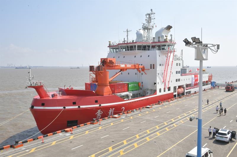 “雪龍2”號(hào)科考破冰船圓滿完成中國第12次北極科學(xué)考察任務(wù)順利返航。自然資源部供圖