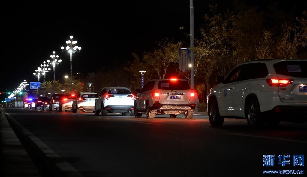 10月28日,即將離開(kāi)額濟(jì)納旗的滯留自駕游客車隊(duì)。新華社記者 王雪冰 攝