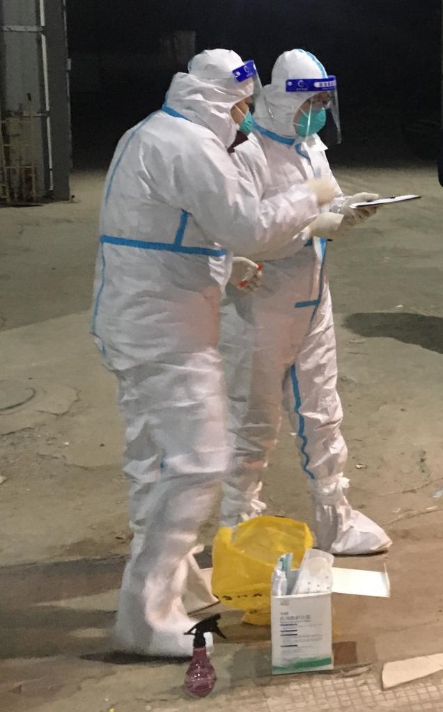 11月4日凌晨,工作人員對貨車把手采樣。(通遼市疾控中心供圖)