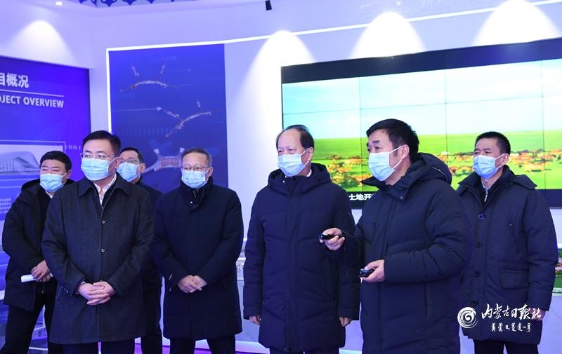 1月18日下午,自治區(qū)黨委書記、人大常委會(huì)主任石泰峰在呼和浩特新機(jī)場(chǎng)智慧展廳,聽取新機(jī)場(chǎng)主體建設(shè)情況介紹。內(nèi)蒙古日?qǐng)?bào)社融媒體記者 袁永紅 攝