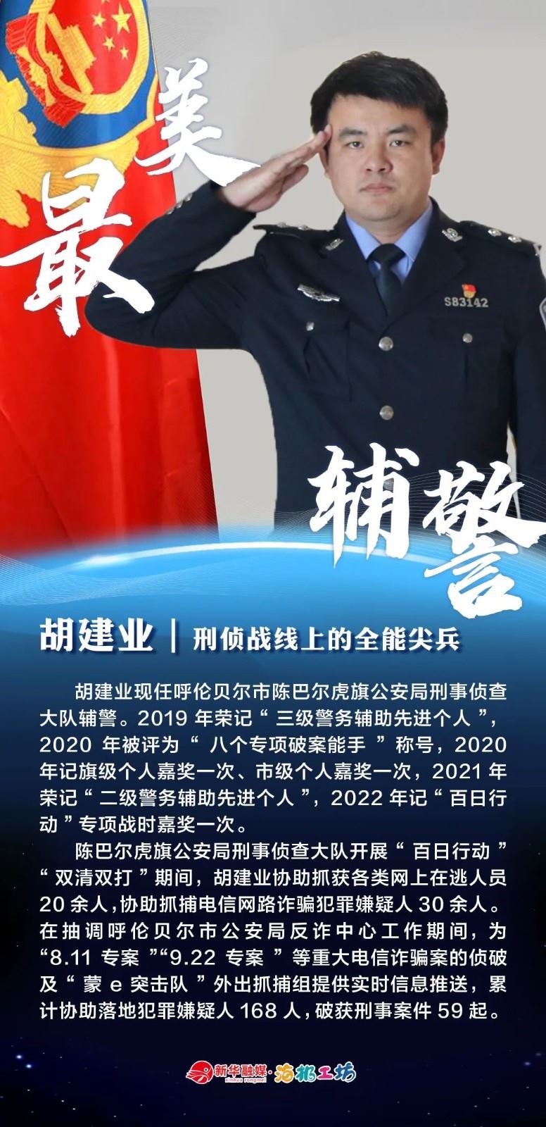 “不同的肩章,同樣的堅(jiān)守……”在“感動(dòng)北疆·最美輔警”獲獎(jiǎng)?wù)咧校?strong>有堅(jiān)守忠誠(chéng)的安全衛(wèi)士郭一鳴,對(duì)癥下藥的老片兒警康華,服務(wù)群眾的熱心人辛永紅,校園安全的“護(hù)航員”李璐瑤,社區(qū)警務(wù)“信息化管家”鄭威,警務(wù)支撐“小能手”胡建業(yè),110接處警“活地圖”劉順峰,網(wǎng)上巡查“質(zhì)檢員”王昊,基層交通安全“好聲音”劉巖,一線“智慧公安”排頭兵張?zhí)睢?/strong>