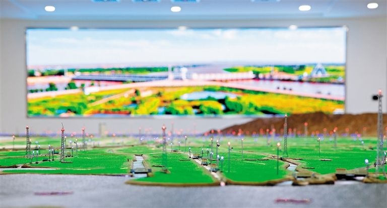 河套灌區(qū)是我國(guó)3個(gè)特大型灌區(qū)之一,也是我國(guó)重要的糧油生產(chǎn)基地,現(xiàn)已形成完整的7級(jí)灌排體系,引黃灌溉面積達(dá)1000多萬(wàn)畝。160平方米的實(shí)體實(shí)時(shí)數(shù)字沙盤(pán)是微縮版的“河套灌區(qū)”,可以清晰地看到整個(gè)灌區(qū)的灌排體系。
