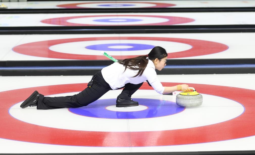 ??1月12日,文馨悅在比賽中擲壺。在第十四屆全國冬季運(yùn)動會冰壺青年組混雙金牌賽中,黑龍江隊(duì)選手李思霖/文馨悅奪得金牌。新華社記者 王楷焱 攝