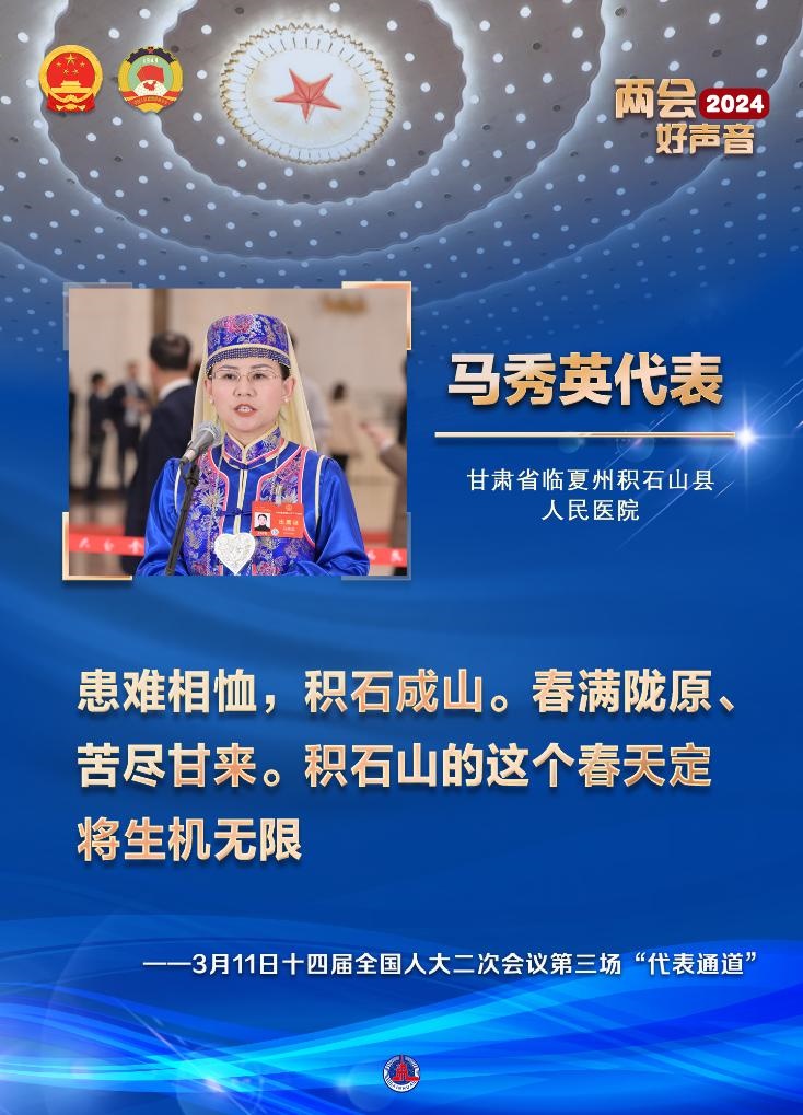 11日下午,十四屆全國人大二次會議第三場“代表通道”在人民大會堂中央大廳北側(cè)舉行。扎根基層、微光如炬,6位全國人大代表分享一線故事,一句句真摯的話語,凝聚成奮進(jìn)的旋律,在春日里回響。