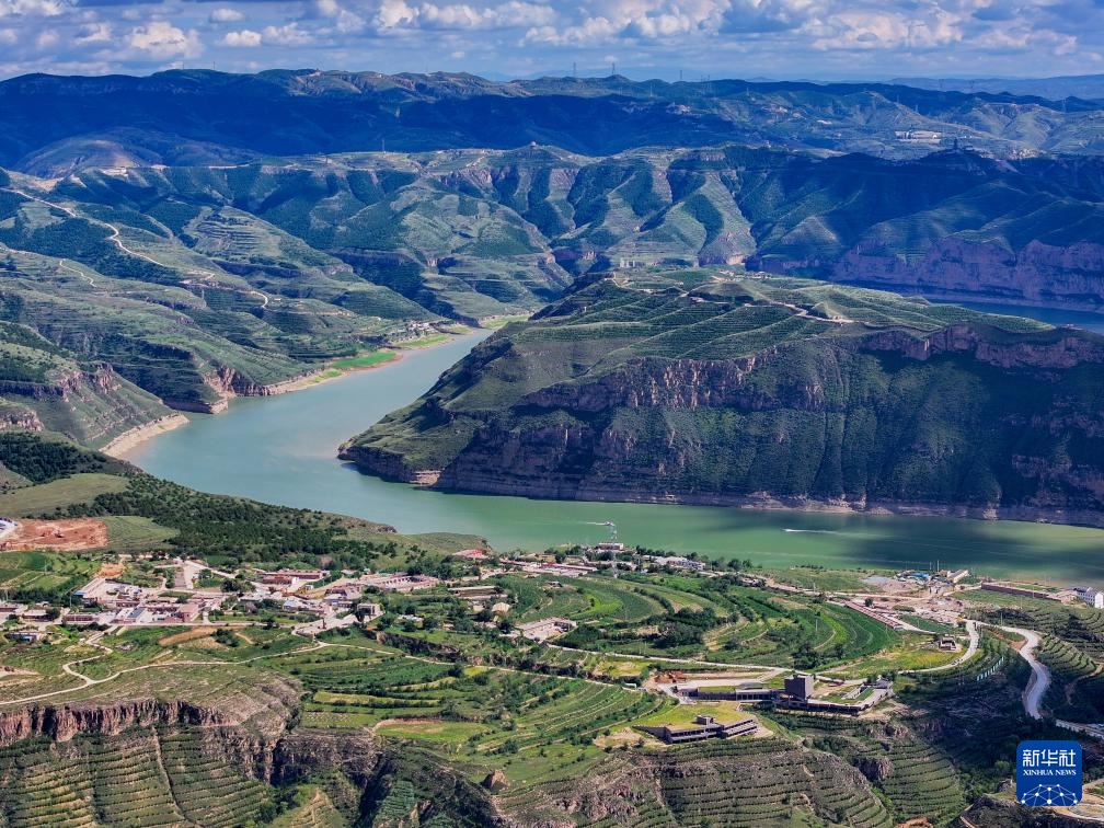 ??這是8月12日拍攝的黃河老牛灣風(fēng)光(無人機(jī)照片)。