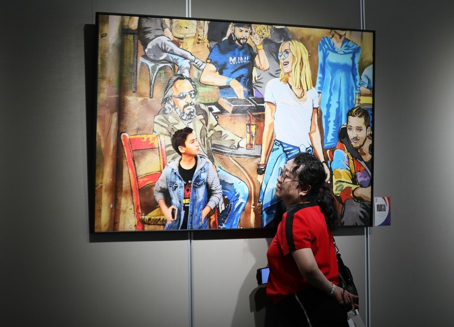 游客參觀“北疆光影”王爭平師生攝影作品展