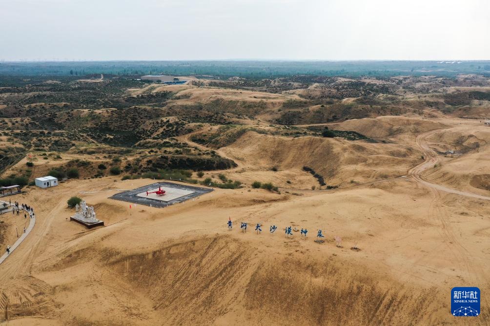 ??這是9月18日拍攝的位于鄂爾多斯市準(zhǔn)格爾旗境內(nèi)的庫布其沙漠神泉旅游區(qū)(無人機照片)。