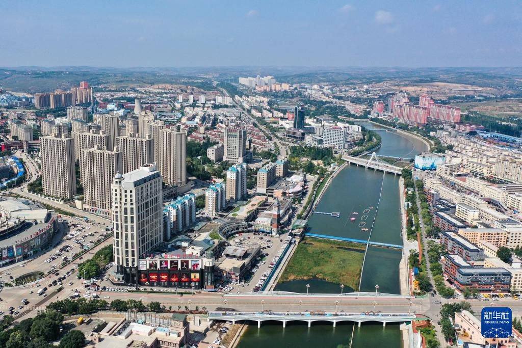 ???這是9月19日拍攝的鄂爾多斯市康巴什區(qū)中軸線(無人機照片)。
