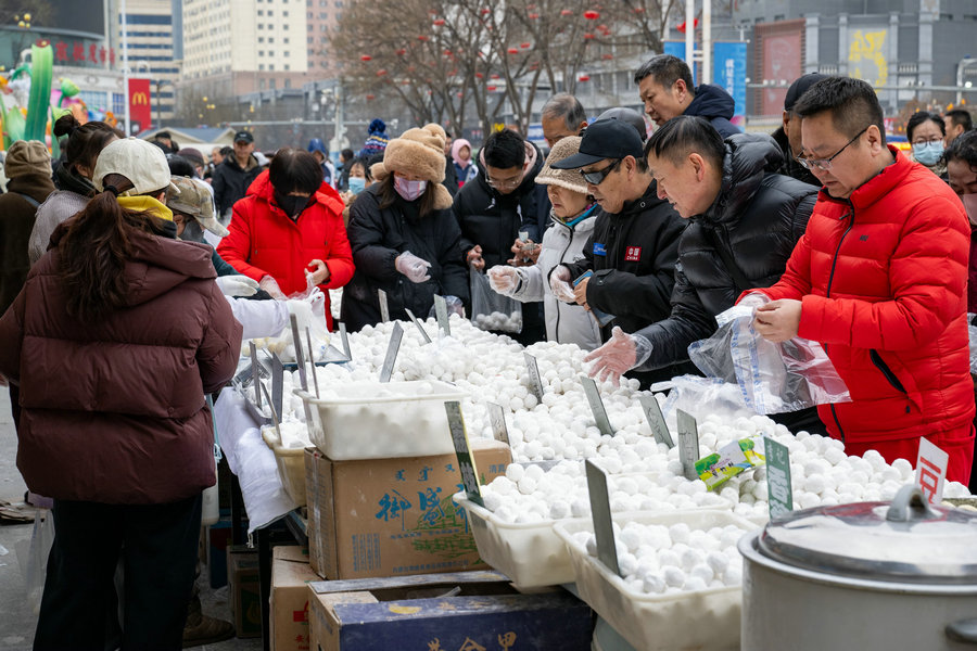 2月11日,隨著正月十五元宵節(jié)臨近,在呼和浩特市舊城北門沿街商鋪,傳統(tǒng)手工元宵迎來銷售高峰。芝麻餡的醇厚香甜、花生餡的濃郁香脆、榴蓮餡的獨特馥郁,市民根據(jù)自身喜好挑選不同口味的元宵,圓滾滾的元宵象征著團(tuán)團(tuán)圓圓,也勾起了人們對傳統(tǒng)手藝的美好回憶。