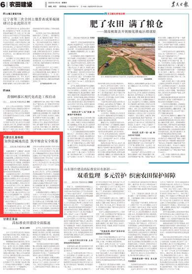 2025年4月3日,《農(nóng)民日報》第6版刊發(fā)題為《內(nèi)蒙古扎魯特旗:加快鹽堿地改造 筑牢糧食安全根基》的文章,報道了近年來,內(nèi)蒙古自治區(qū)通遼市扎魯特旗圍繞“向鹽堿地要糧,讓荒原變良田”的目標(biāo),加大鹽堿地治理力度,不斷挖掘鹽堿地開發(fā)利用價值,把工程措施、生物措施和化學(xué)改良措施有機(jī)結(jié)合起來,因地制宜、綜合治理,不斷拓展農(nóng)業(yè)耕地資源,激活鹽堿地“潛在糧倉”資源,實現(xiàn)鹽堿地資源的系統(tǒng)改良和高效利用。