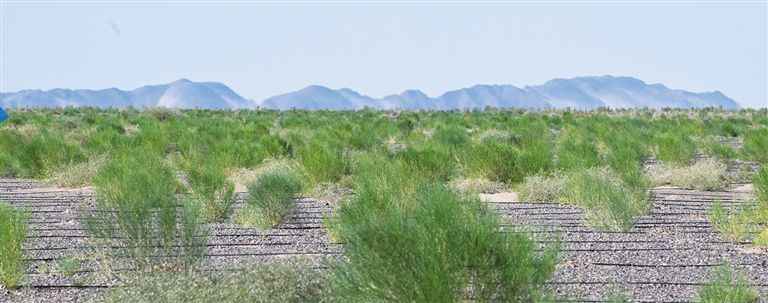 “這里是內(nèi)蒙古阿拉善盟西部荒漠綜合治理項(xiàng)目(二期)額濟(jì)納河片區(qū),是內(nèi)蒙古深入貫徹落實(shí)國(guó)家生態(tài)戰(zhàn)略、打贏河西走廊—塔克拉瑪干沙漠邊緣阻擊戰(zhàn)關(guān)鍵戰(zhàn)場(chǎng)之一。我們?cè)谶@里人工種草6萬(wàn)畝,現(xiàn)在已經(jīng)全部完成栽種,正在進(jìn)行養(yǎng)護(hù)工作。”額濟(jì)納河片區(qū)負(fù)責(zé)人關(guān)新偉介紹,項(xiàng)目由阿拉善盟林業(yè)和草原局推進(jìn),中國(guó)建筑一局有限公司、中鐵四局集團(tuán)有限公司等承建,額濟(jì)納旗林業(yè)和草原局為項(xiàng)目建設(shè)提供技術(shù)支撐。