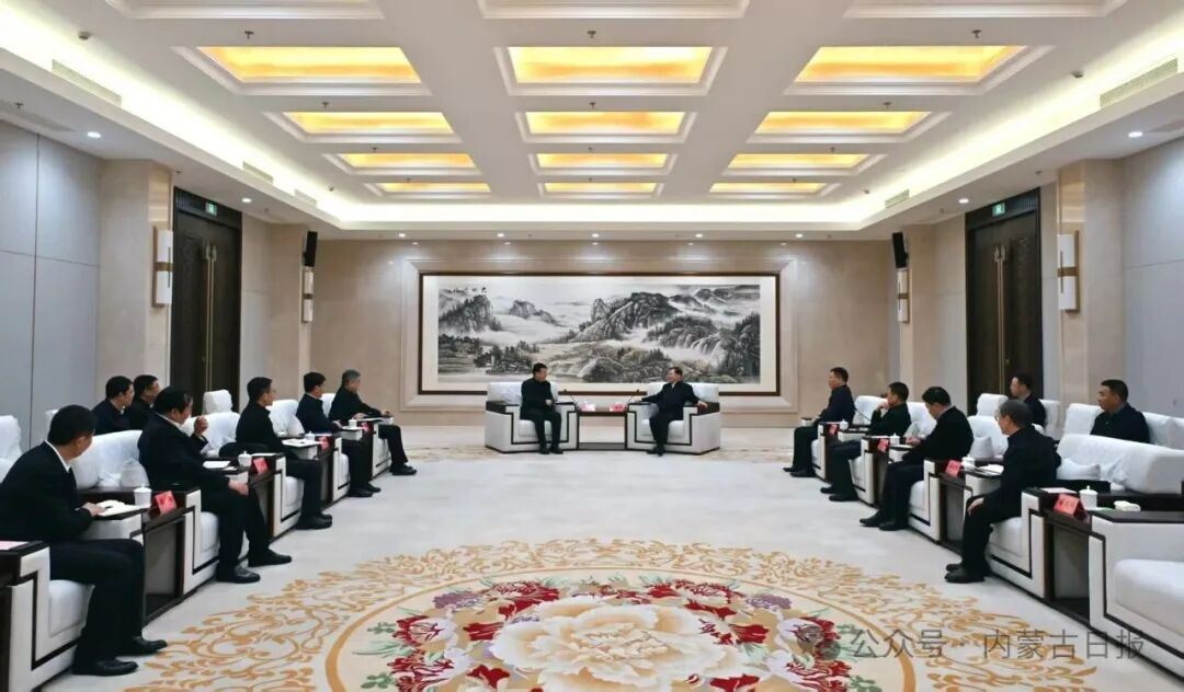 12月19日,自治區(qū)黨委書記王偉中,自治區(qū)黨委副書記、自治區(qū)人民政府主席包鋼在呼和浩特會見中國大唐集團(tuán)有限公司董事長呂軍、總經(jīng)理李向良一行。草原云·內(nèi)蒙古新聞網(wǎng)記者 馬建兵 攝