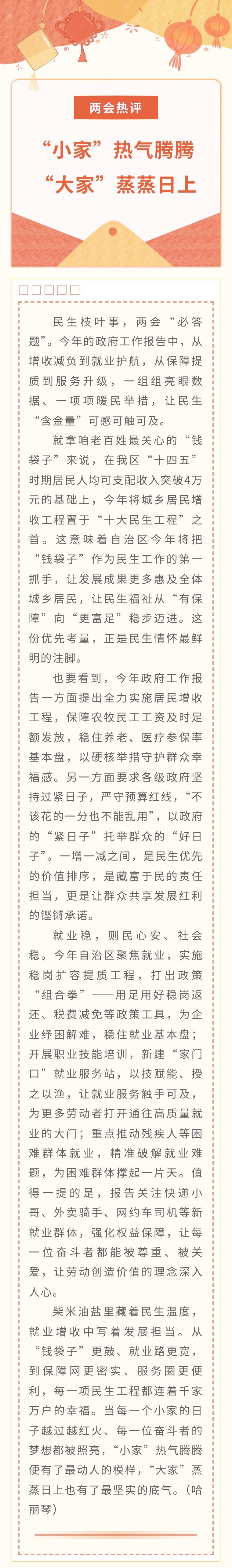 兩會熱評|“小家”熱氣騰騰 “大家”蒸蒸日上