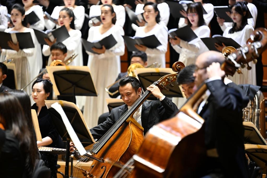 當日,“黃河大合唱”中國交響樂團交響合唱音樂會在北京音樂廳舉行。
