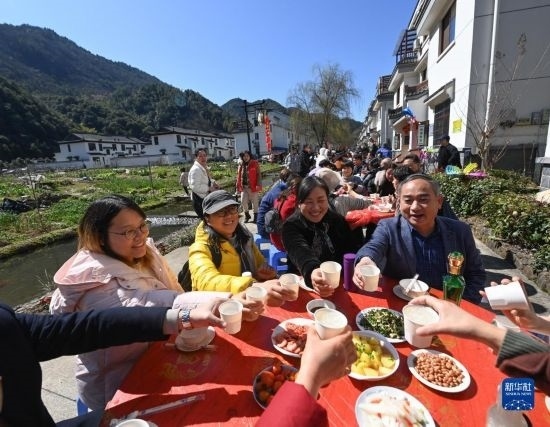 當(dāng)日,上千名游客來(lái)到浙江省建德市蓮花鎮(zhèn)戴家新村民宿一條街,參加鄉(xiāng)村特色百家宴,感受新農(nóng)村“舌尖上的幸?!?。本次鄉(xiāng)村百家宴也標(biāo)志著2023建德市蓮花鎮(zhèn)鄉(xiāng)村民俗旅游文化節(jié)正式開啟。