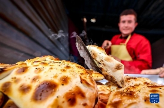 2月26日,在托克扎克鎮(zhèn)農(nóng)貿(mào)市場(chǎng),名為“庫(kù)麥其”的當(dāng)?shù)貍鹘y(tǒng)面食剛剛出爐。