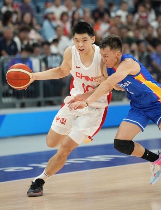 9月26日,中國(guó)隊(duì)球員崔永熙在杭州亞運(yùn)會(huì)的比賽中突破。新華社記者 孟永民 攝