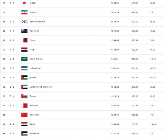 亞洲前三為日本隊(duì)、伊朗隊(duì)、韓國隊(duì)