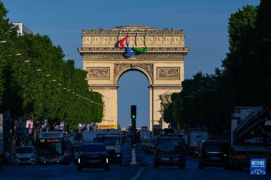 這是6月28日在法國(guó)巴黎拍攝的懸掛有殘奧會(huì)標(biāo)志的凱旋門(mén)。新華社記者 許暢 攝