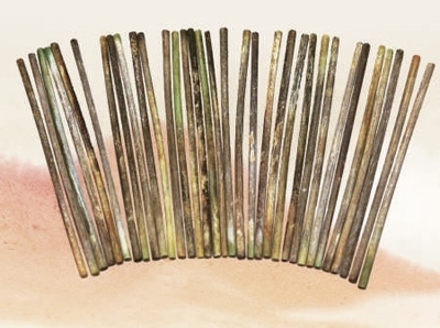戰(zhàn)國時期中山國中山成公陪葬墓出土的骨算籌。河北博物院供圖