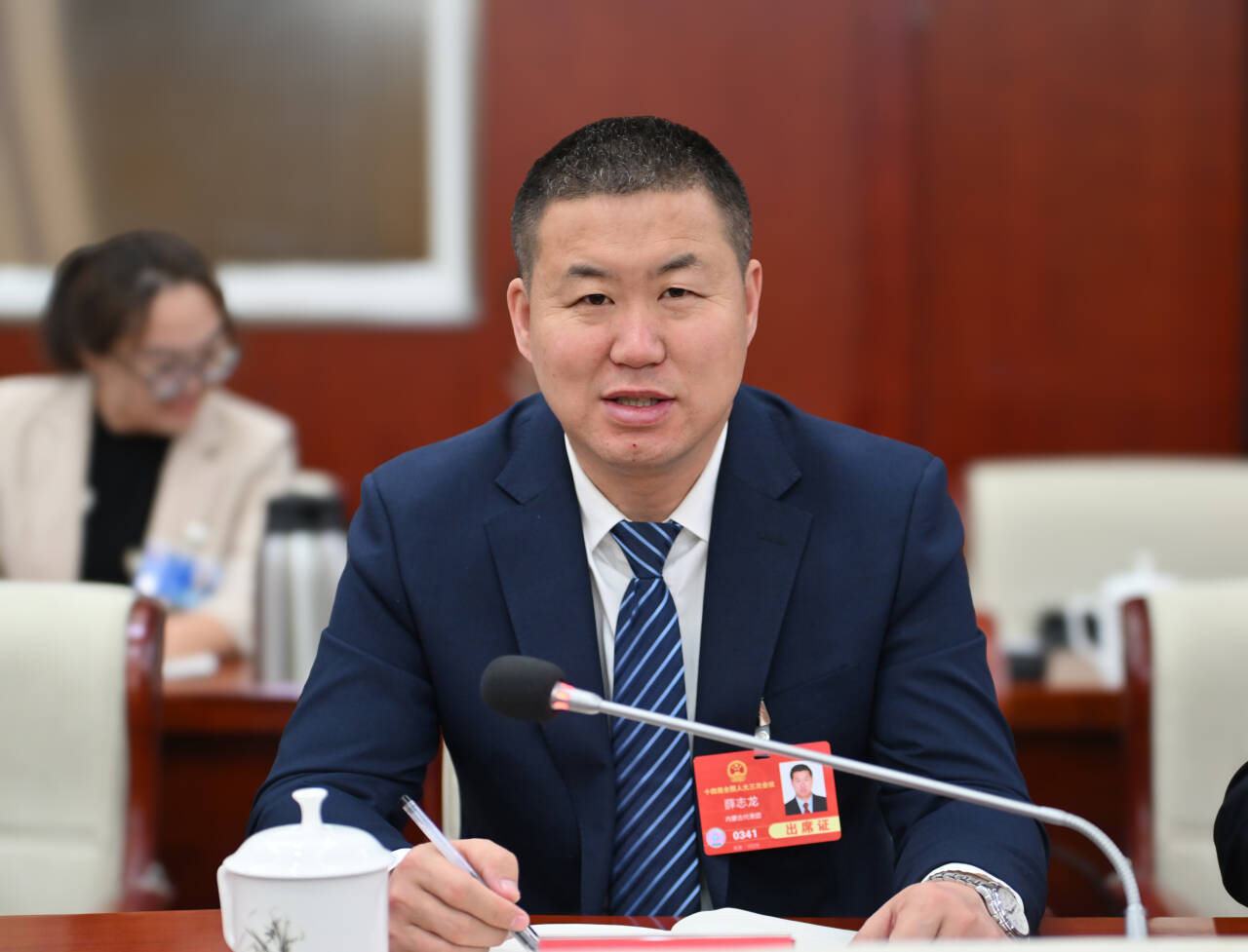 3月9日,全國人大代表孟達(dá)英(左)在審議“兩高”工作報(bào)告時(shí)建議,最高人民法院應(yīng)出臺(tái)有關(guān)破壞濕地行為定罪量刑標(biāo)準(zhǔn)的有關(guān)法律配套司法解釋。草原云記者 馬建兵 攝