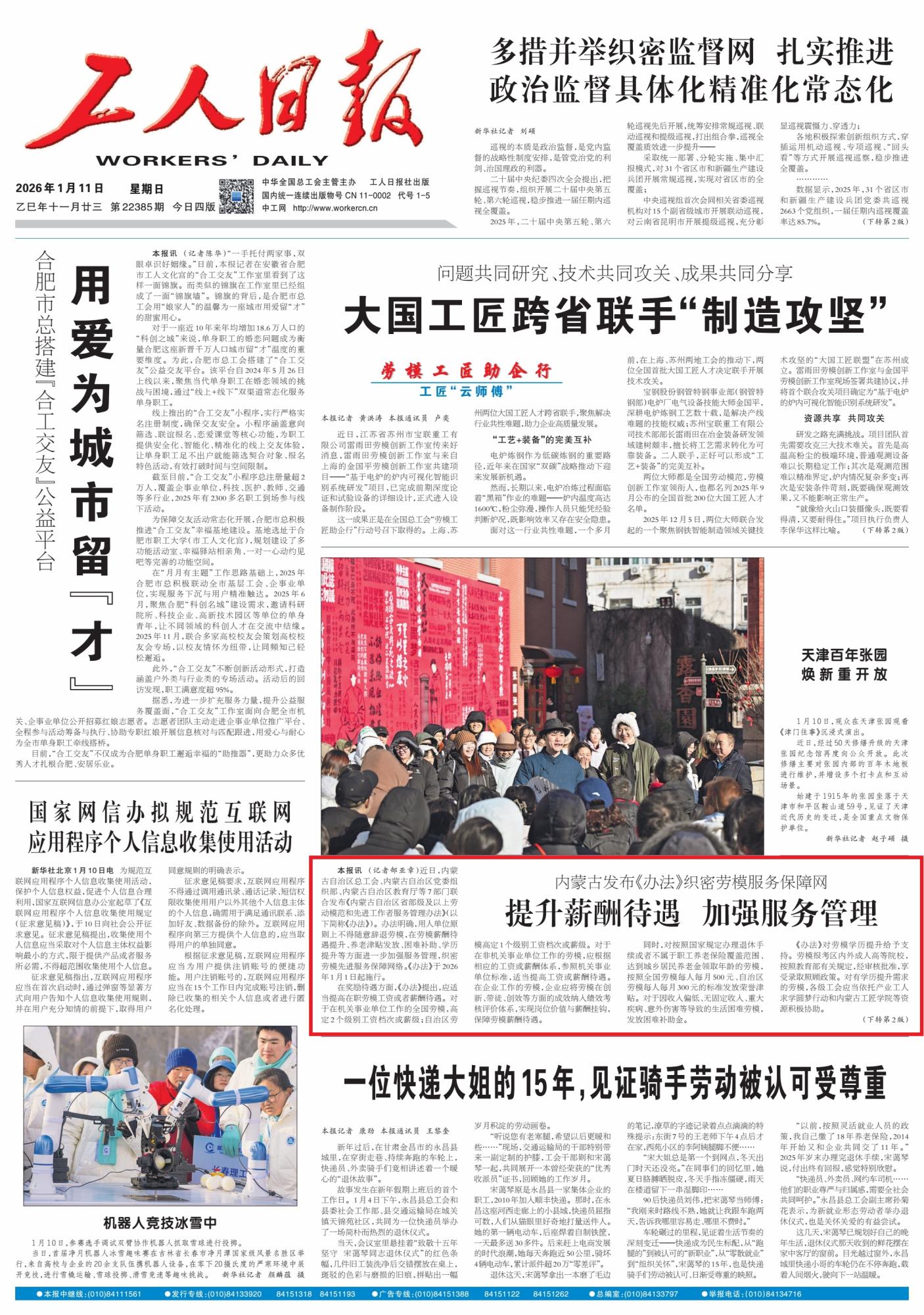《工人日?qǐng)?bào)》(2026年1月11日第1版)