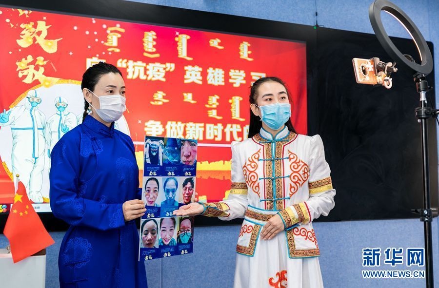 當(dāng)日,內(nèi)蒙古呼和浩特市玉泉區(qū)民族實驗小學(xué)開展“向抗疫英雄學(xué)習(xí),爭做新時代的英雄”空中主題班會活動,通過講述抗疫英雄們馳援武漢的感人瞬間和昂揚(yáng)風(fēng)貌,引導(dǎo)同學(xué)們感悟英雄品格和榜樣的力量,激發(fā)愛國熱情,爭做新時代的小英雄。新華網(wǎng) 發(fā)(丁根厚攝)