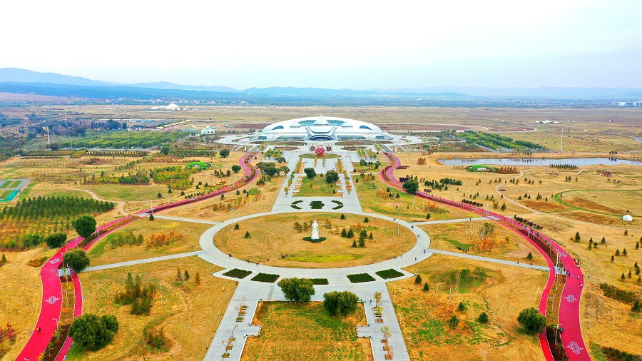 10月7日,空中俯瞰內(nèi)蒙古少數(shù)民族群眾文化體育運(yùn)動(dòng)中心。
