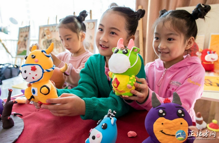 2月7日,小朋友們在呼和浩特市玉泉區(qū)青少年宮捏制“萌?!别ね磷髌?,表達對新春的美好祝愿。春節(jié)前夕,玉泉區(qū)青少年宮舉辦巧手“萌?!庇麓夯顒?,小朋友們在老師的指導(dǎo)下制作生肖牛黏土作品,喜迎農(nóng)歷牛年,表達對新年的美好祝愿。