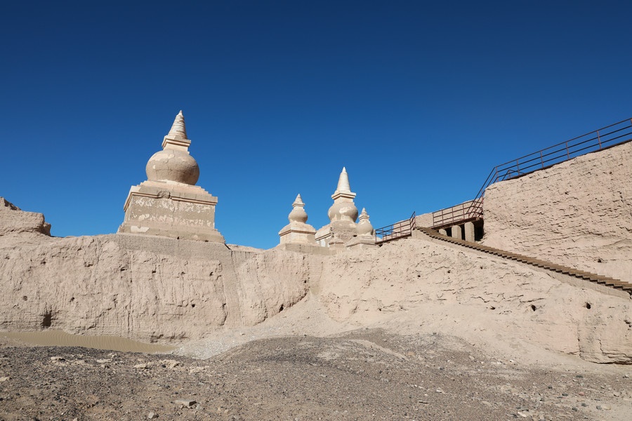 1372年,黑城被明朝大將馮勝所破,城址從此荒廢。邊塞詩人王維《使至塞上》“單車欲問邊,屬國過居延”中的居延,寫的就是這里的景象,“大漠孤煙直,長河落日圓”也因此成為千古名句。但誰又能想到,曾經(jīng)的居延綠州,會因為當年弱水(黑河,現(xiàn)額濟納河)的斷流而變成蒼茫大漠。更令人痛心的是,在城址荒廢500多年后,一群打著探險的旗號的“強盜”蜂擁而至,對黑城進行了瘋狂盜挖,大量西夏和蒙元時期的珍貴文物流失海外,成為國人心中永遠的痛。近年來,內(nèi)蒙古加大了黑城的保護力度,希望籍此能夠早日重現(xiàn)昔日綠洲。